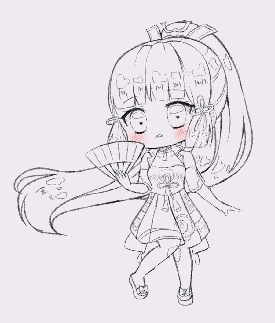 Sketch in a chibi style with a small pop of color, exact style may vary between commissions